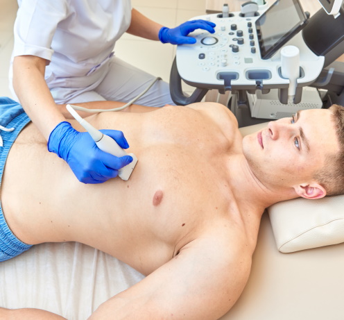 ЭхоКГ проводится в комфортной обстановке, в положении лёжа. На грудную клетку пациента наносится специальный гель, затем врач ультразвуковым датчиком исследует сердце. Процедура длится около 15–20 минут, абсолютно безболезненна и не несёт лучевой нагрузки.
