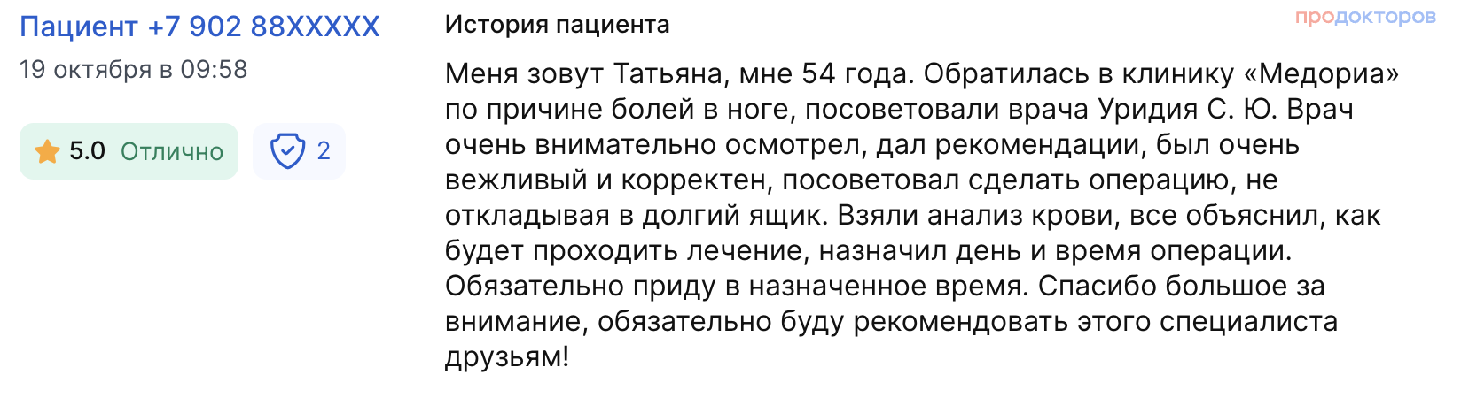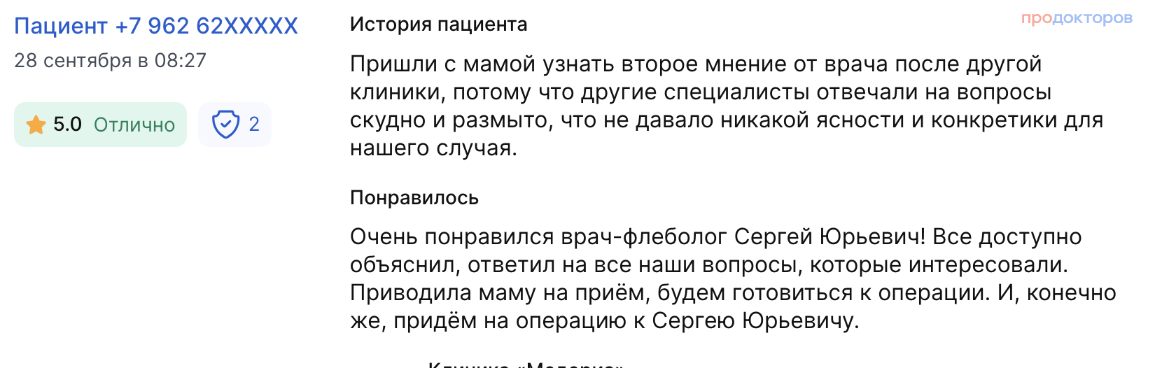 ДОВЕРИЕ ПАЦИЕНТОВ — более 30 положительных отзывов на независимых площадках, средний рейтинг 4.8.